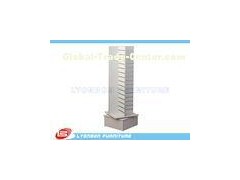 White OEM rotatable slatwall display stand with metal hangers for shop product prsenting